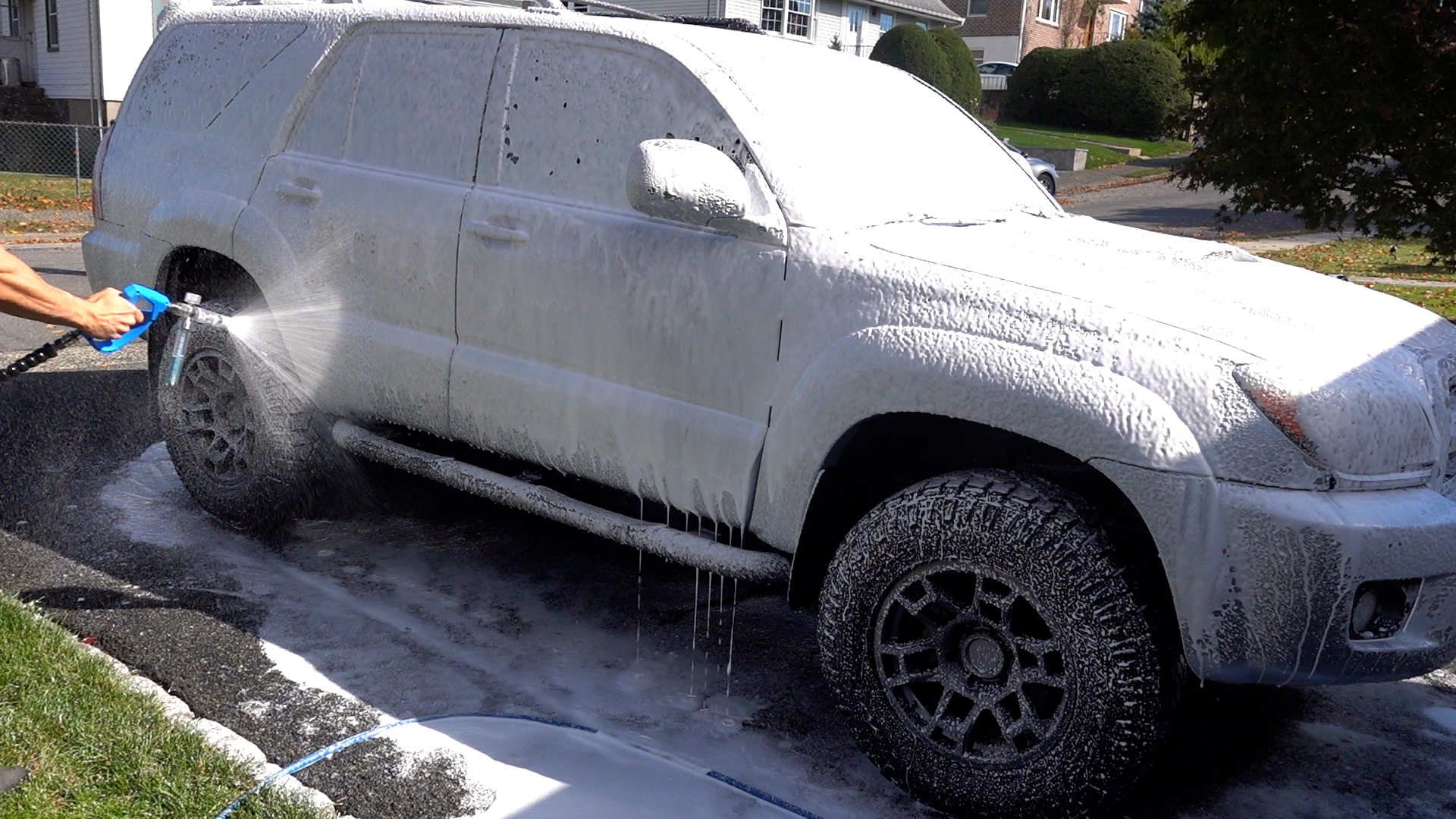 allowing me to fully coat my Toyota 4Runner and even applying multiple foam passes for thorough coverage before the contact wash.