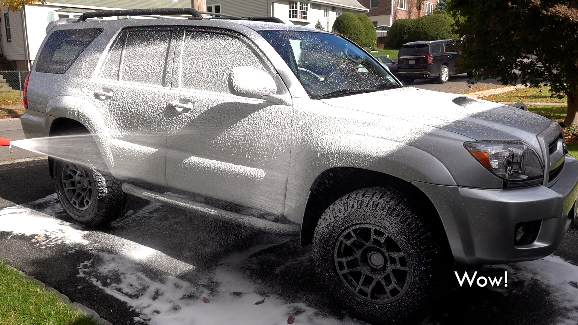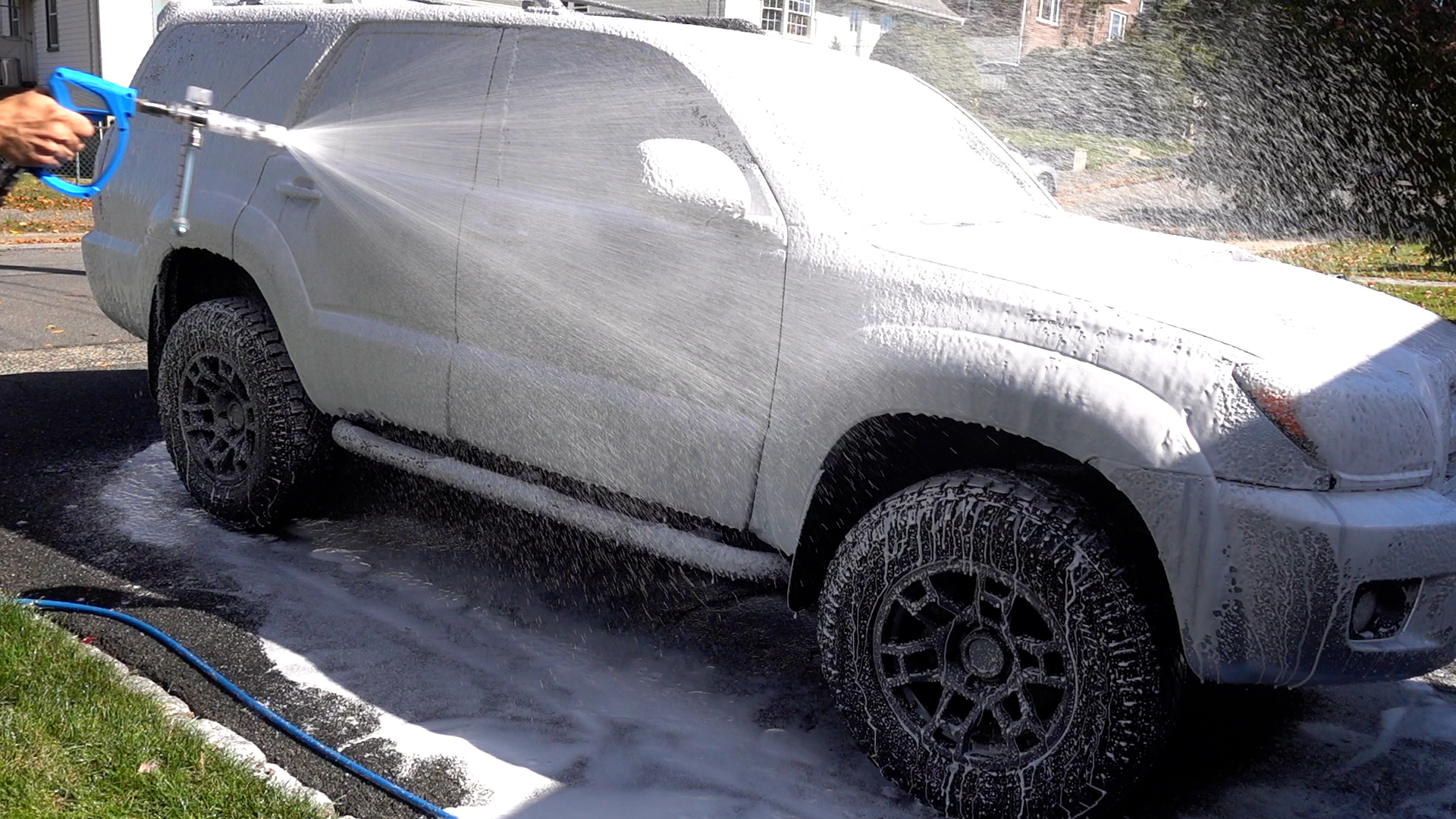 allowing me to fully coat my Toyota 4Runner and even applying multiple foam passes for thorough coverage before the contact wash.